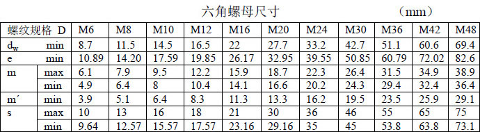 | 螺纹规格d | M6 | M8 | M10 | M12 | M16 | M20 | M24 | M30 | M36 | M42 | M48 | |
